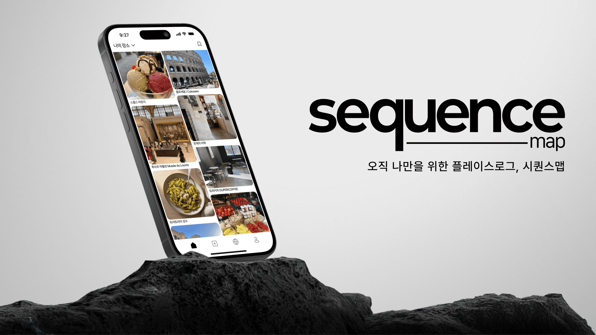 sequencemap은 사용자가 경험한 장소를 기반으로 시퀀스를 기록하고, 이를 하나의 플레이스로그로 쌓아갈 수 있는 서비스입니다.