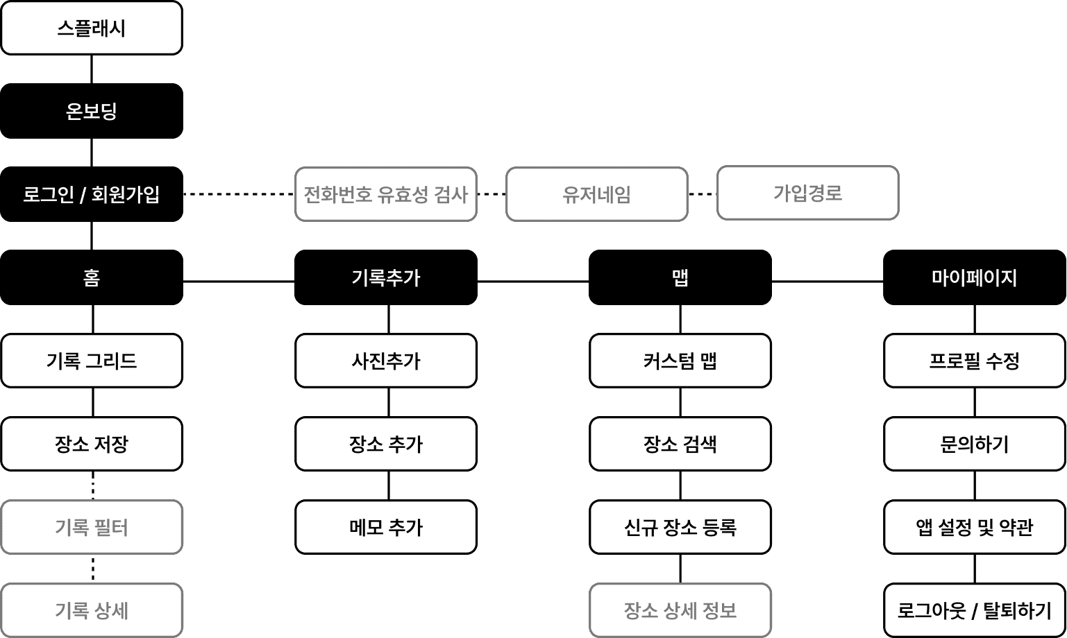 사용자가 간편하게 장소를 기록하고 손쉽게 탐색할 수 있도록 정보구조(IA)를 설계했습니다.